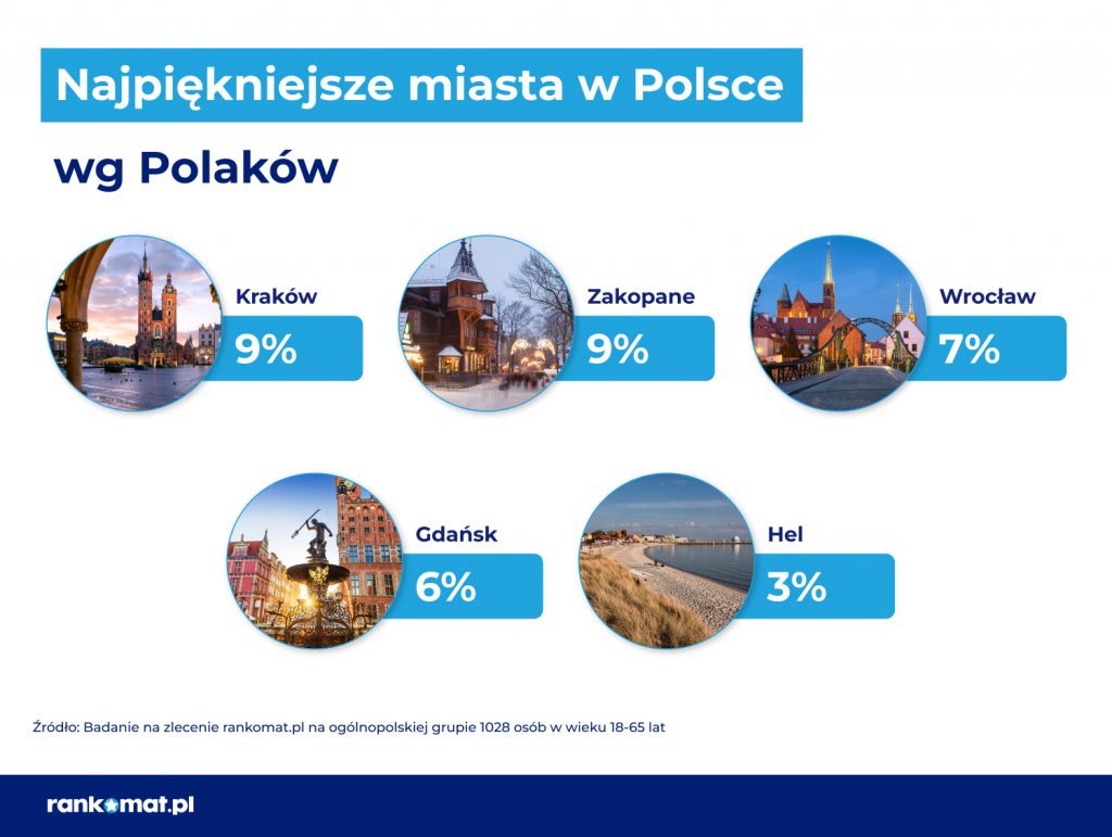 Niektórzy respondenci wskazywali konkretne miasta. Najwięcej głosów zdobyły ex aequo Kraków i Zakopane (po 9%). Wrocław (7%) i Gdańsk (6%) również znalazły się w czołówce. Wnioski? Małopolska to bezsprzecznie najpiękniejszy region w oczach Polaków.
