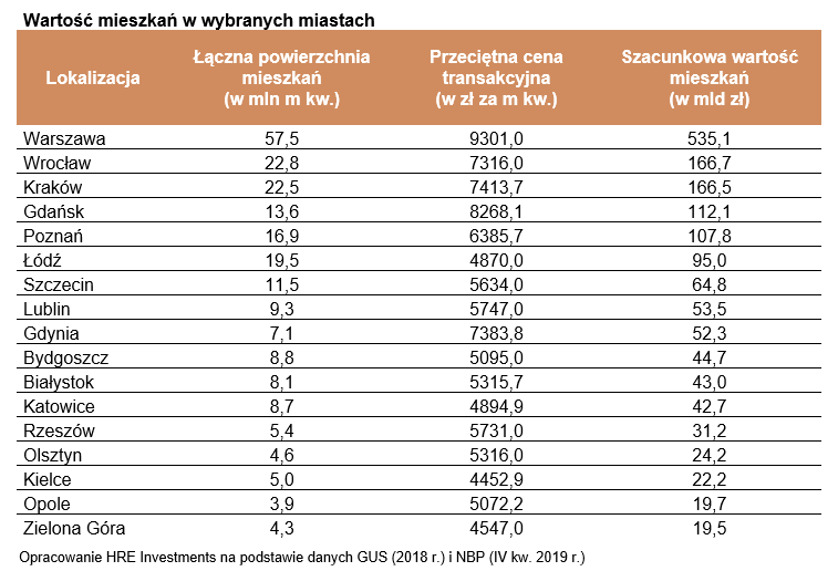 W 17 miastach wojewódzkich mamy około 3,8 mln mieszkań o wartości na poziomie mniej więcej 1,6 biliona złotych – wynika z szacunków HRE Investments.