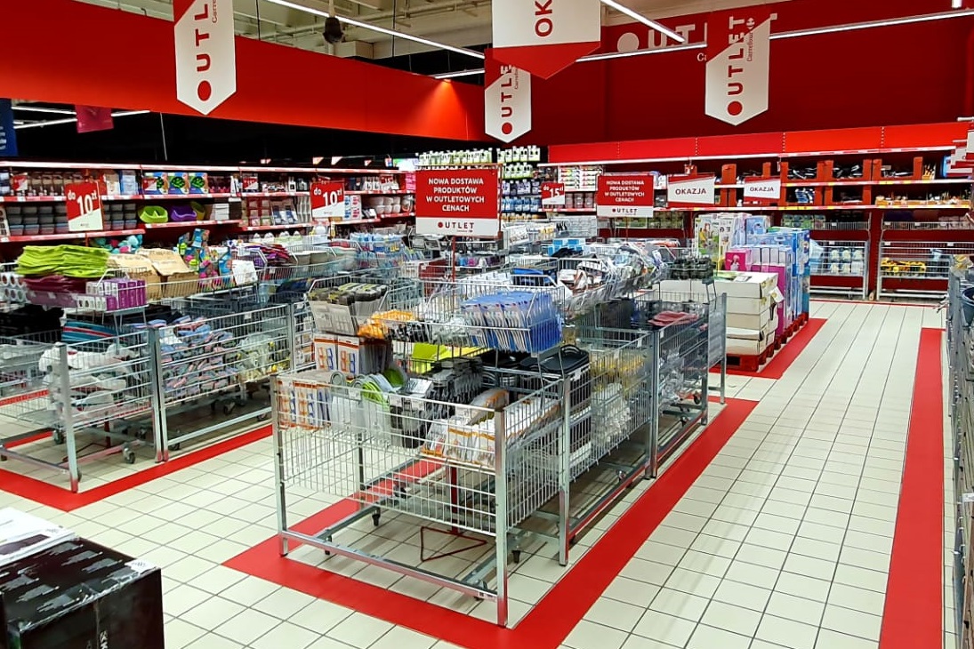 Strefy OUTLET to specjalnie oznaczone strefy na terenie sklepów, w których klienci mogą nabyć produkty niespożywcze w atrakcyjnych cenach. Strefy OUTLET Carrefour działają już w większości polskich miast.