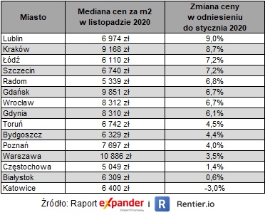 Ceny mieszkań w grudniu 2020 – Raport Expandera i Rentier.io