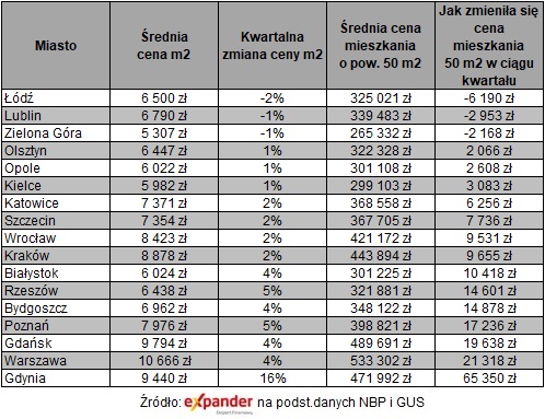 Wśród licznych wzrostów na szczególną uwagę zasługuje Gdynia, gdzie na rynku zapanowało prawdziwe szaleństwo. Średnia cena metra kwadratowego wyniosła aż 9 440 zł. To aż o 16% więcej niż w poprzednim kwartale. W tak krótkim okresie cena mieszkania o powierzchni 50 m2 wzrosła aż o 65 tys. zł. Po tym wzroście takie mieszkanie kosztuje 471 992 zł. W Gdyni jest więc już drożej niż w Krakowie czy Wrocławiu. Wyższe ceny obowiązują jedynie w Gdańsku i Warszawie.
