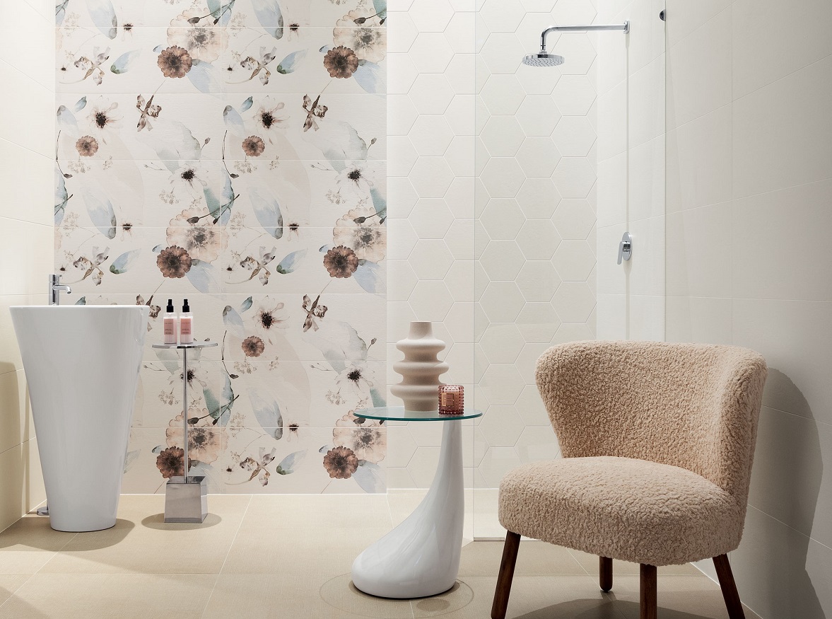Wnętrza utrzymane w stylu romantycznym, dzięki kolekcjom od Grupy Tubądzin, stają się miejscem pełnym miłości. Kwiatowe motywy, subtelne faktury i harmonijna kolorystyka tych kolekcji idealnie współgrają z estetyką romantycznego wnętrza, tworząc przestrzeń pełną uroku i delikatności.