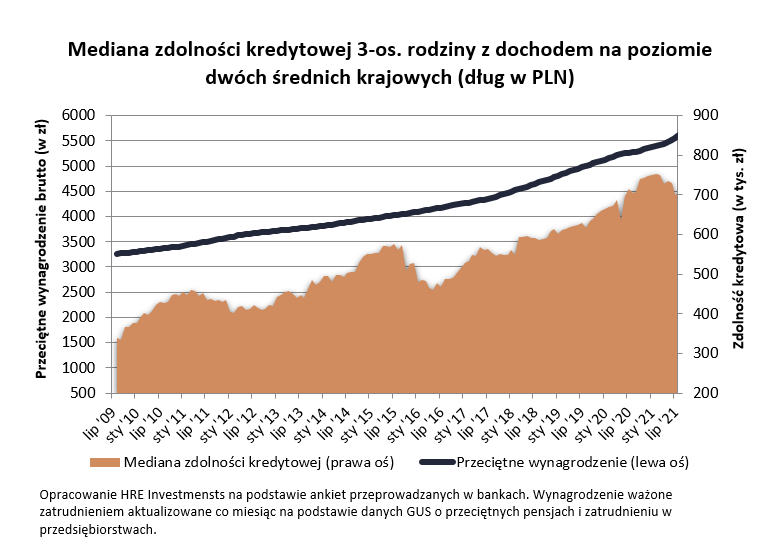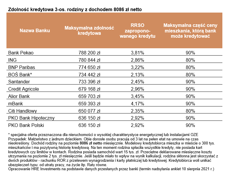 Najnowsze dane z banków sugerują, że trzyosobowa rodzina zarabiająca równowartość dwóch średnich krajowych mogłaby pożyczyć na mieszkanie ponad 706 tys. złotych – tak wynika z ankiety przeprowadzonej przez HRE Investments. Niezbędne jest aby uściślić, że nasza przykładowa rodzina chce zadłużyć się na lat 30, ma do dyspozycji co miesiąc ponad 8 tysięcy złotych netto, do tego nie ma innych zobowiązań, a mimo to zdążyła już wyrobić sobie dobrą historię kredytową.
