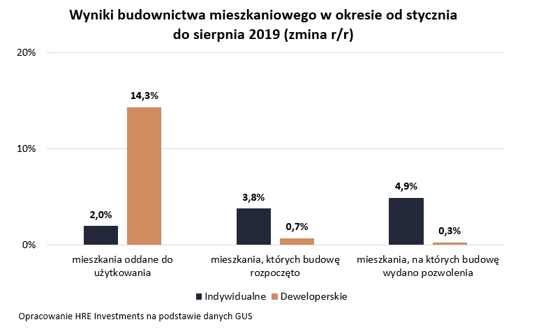 Wynik ten wpisuje się w obserwowane od miesięcy wahania w obszarze rozpoczynanych inwestycji. Podczas gdy w lutym, marcu, maju i lipcu deweloperzy notowali pozytywne dynamiki, to w kwietniu, czerwcu oraz sierpniu sytuacja była gorsza. Efekt tego jest taki, że po 8 miesiącach produkcja nowych mieszkań jest w bieżącym roku kosmetycznie tylko wyższa niż w analogicznym okresie 2018 roku. W sumie więc nie ma na co narzekać zważywszy na fakt, że rok 2018 był dla deweloperów bardzo udany.