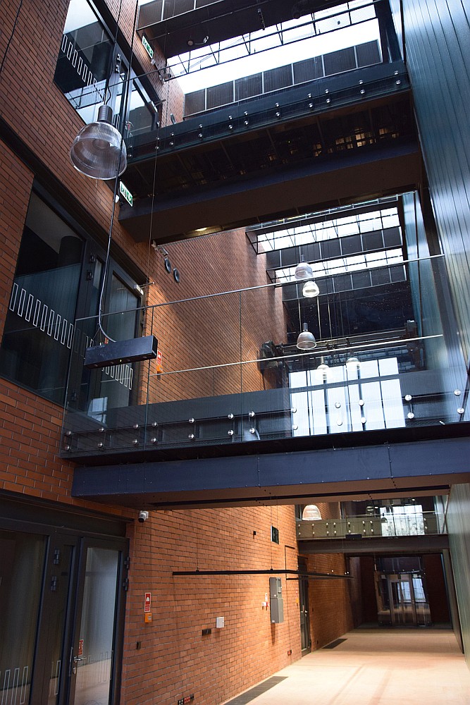 – Dla pełnego wydobycia industrialnego charakteru wnętrza, na wysokości drugiej kondygnacji podwieszono w holu oryginalną, odrestaurowaną suwnicę, będącą naocznym świadkiem funkcjonującej w tym miejscu dawnej gazowni. Całość tworzy wyjątkową atmosferę, w której bardzo ważną rolę odgrywa światło. Przez zaprojektowane w dachu świetliki, wdziera się ono ze wszystkich czterech stron świata do wnętrza holu, wywołując wrażenie obecności niezwykłej siły ducha obiektu – opowiada arch. Grzegorz Tkacz.