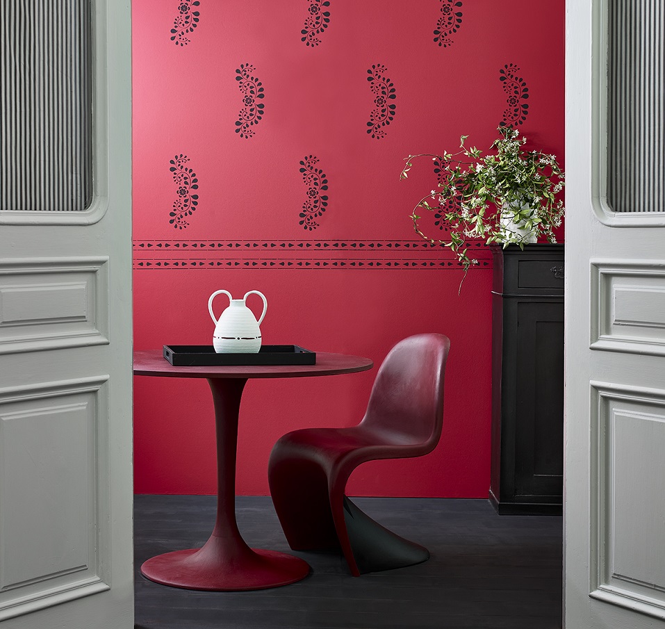 Korzystając z trzyczęściowego szablonu Faux Bone Inlay możemy udekorować orientalnymi wzorami ściany, drzwi, blaty i fronty mebli czy dodatki w domu, ponieważ farba Chalk Paint™ może być z powodzeniem stosowana na większości popularnych materiałów. Dekoratorską fantazję pozwoli nam rozwinąć stworzona przez Annie paleta kolorów farb Chalk Paint™ składająca się z 42 odcieni.