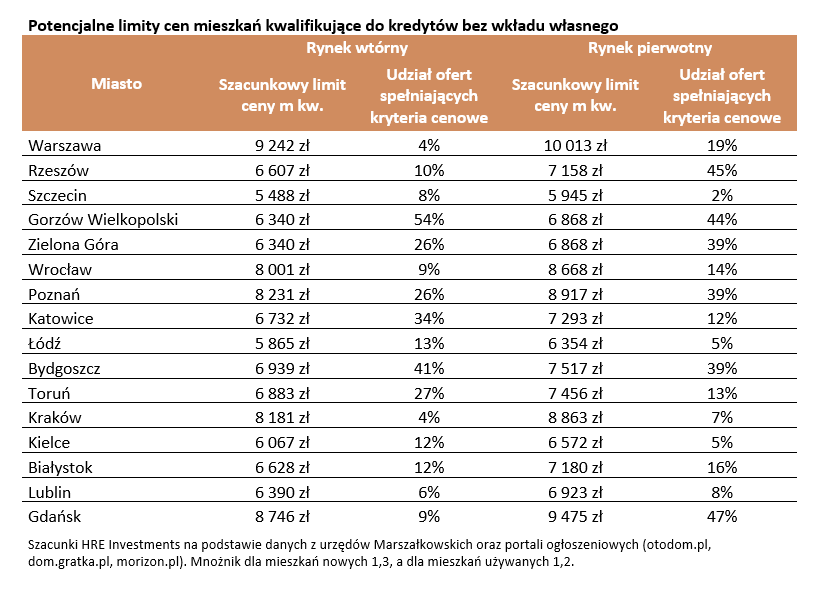 Gdyby wspomniany rządowy program ruszył już dziś, to we wszystkich miastach wojewódzkich zakwalifikowałoby się do niego około 20-25% mieszkań wystawionych obecnie na sprzedaż – wynika z szacunków HRE Investments.