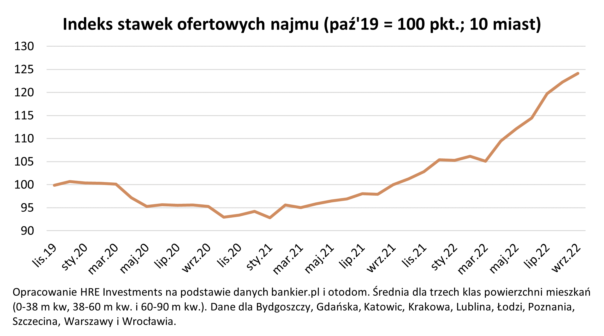 Nie można też pominąć faktu, że wprowadzenie preferencyjnych kredytów rozładowałoby też przynajmniej częściowo napięcia, z którymi mamy dziś do czynienia na rynku najmu. Chodzi o fakt, że napływ Ukraińców do Polski uwidocznił jak bardzo brakuje w Polsce mieszkań. Efektem jest mała liczba wolnych mieszkań na wynajem i dynamiczny wzrost czynszów (przeciętnie o ponad 25% r/r). Do tego dziś osoby, które nie mogą sobie pozwolić na zakup mieszkania na kredyt, niejednokrotnie są zmuszone do najmu. Jeśli alternatywą dla obecnych i potencjalnych najemców będzie tani preferencyjny kredyt, to popyt na najem osłabnie i sytuacja na tym rynku będzie się normalizowała.