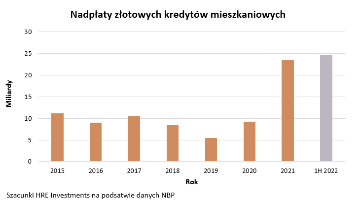 Nieruchomości inwestycyjne. Prawie 25 miliardów złotych – na taką kwotę Polacy nadpłacili złotowe kredyty mieszkaniowe w pierwszym półroczu br. To najpewniej najwyższy wynik w historii.
