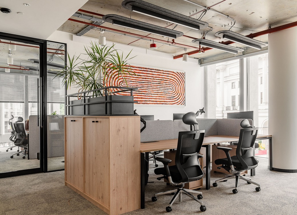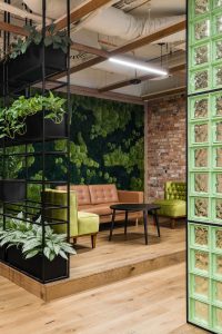 – Dobrze jest budować kolorystykę pomieszczenia nie tylko poprzez farby, ale również różnorodność tekstur i faktur – zwłaszcza tych naturalnych. Korzystanie z naturalnych materiałów, zwłaszcza tych lokalnych, daje pracownikom poczucie, że to jest ich miejsce oraz skojarzenie poczucia bycia bliżej natury. Różnorodność faktur stymuluje nie tylko wzrokowo, ale też dotykowo. Takiej przestrzeni można doświadczać, a nie tylko w niej być. – mówi Natalia Ośko, psycholog, psychoterapeuta w trakcie szkolenia w nurcie poznawczo-behawioralnym. – Warto zauważyć, że na odbiór kolorów może również wpływać oświetlenie. Oprócz kwestii estetycznych, zbyt mocne światło może być zbyt dużym bodźcem dla pracowników o wysokiej wrażliwości sensorycznej, może też działać jak rozpraszacz. Oświetlenie dające kolor podobny do tego naturalnego, podążające barwą za rytmem dobowym, powoduje redukcję stresu zarówno u osób neuroatypowych jak i neurotypowych – dodaje.