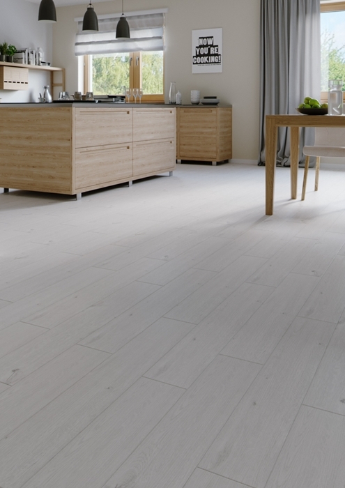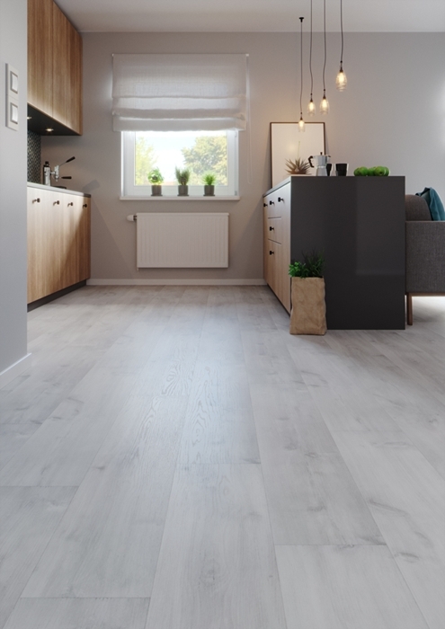 Postawiło to również wyzwania przed producentami podłóg. Częste mycie, tłuszcz, narażenie na bezpośredni kontakt z wodą wymagają, aby podłoga była wodoodporna. Intensywne użytkowanie wymaga ekstremalnej trwałości podłogi. Z drugiej strony połączenie z pokojem dziennym powoduje, że zwracamy szczególną uwagę na wygląd i właściwości użytkowe tej podłogi – chcemy, aby stanowiła spójną całość.