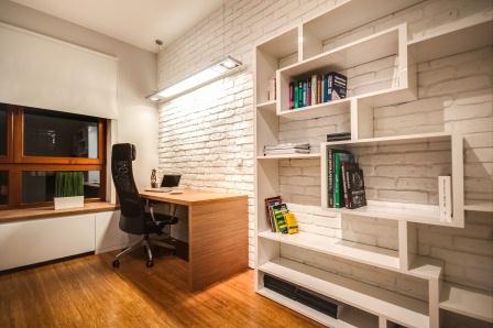 Jak zauważa ekspert, przede wszystkim skupmy się na atutach pokoju. Pomyślmy, jak w pełni wykorzystać jego przestrzeń. Jeśli w pomieszczeniu znajduje się wnęka, przekształćmy ją w użyteczne archiwum na dokumenty. Gdy takiej możliwości nie ma, wystarczy kilka półek asymetrycznie zawieszonych na ścianie. Oryginalny efekt osiągniemy, jeśli będą one wyraźnie kontrastować kolorem. W tak prosty sposób stworzymy ciekawą stylizację, a jednocześnie uporządkowane miejsce pracy. Pamiętajmy, dodatki to sekret udanej aranżacji. Do zrealizowania udanego projektu wystarczy np. designerska lampa zapewniająca duży dostęp światła, czy ścienna tablica do zawieszania notatek lub ciekawy obraz. W myśl powiedzenia, by łączyć „przyjemne z pożytecznym”, odpowiednio urządzony domowy gabinet może sprzyjać bardziej twórczej i efektywnej pracy.