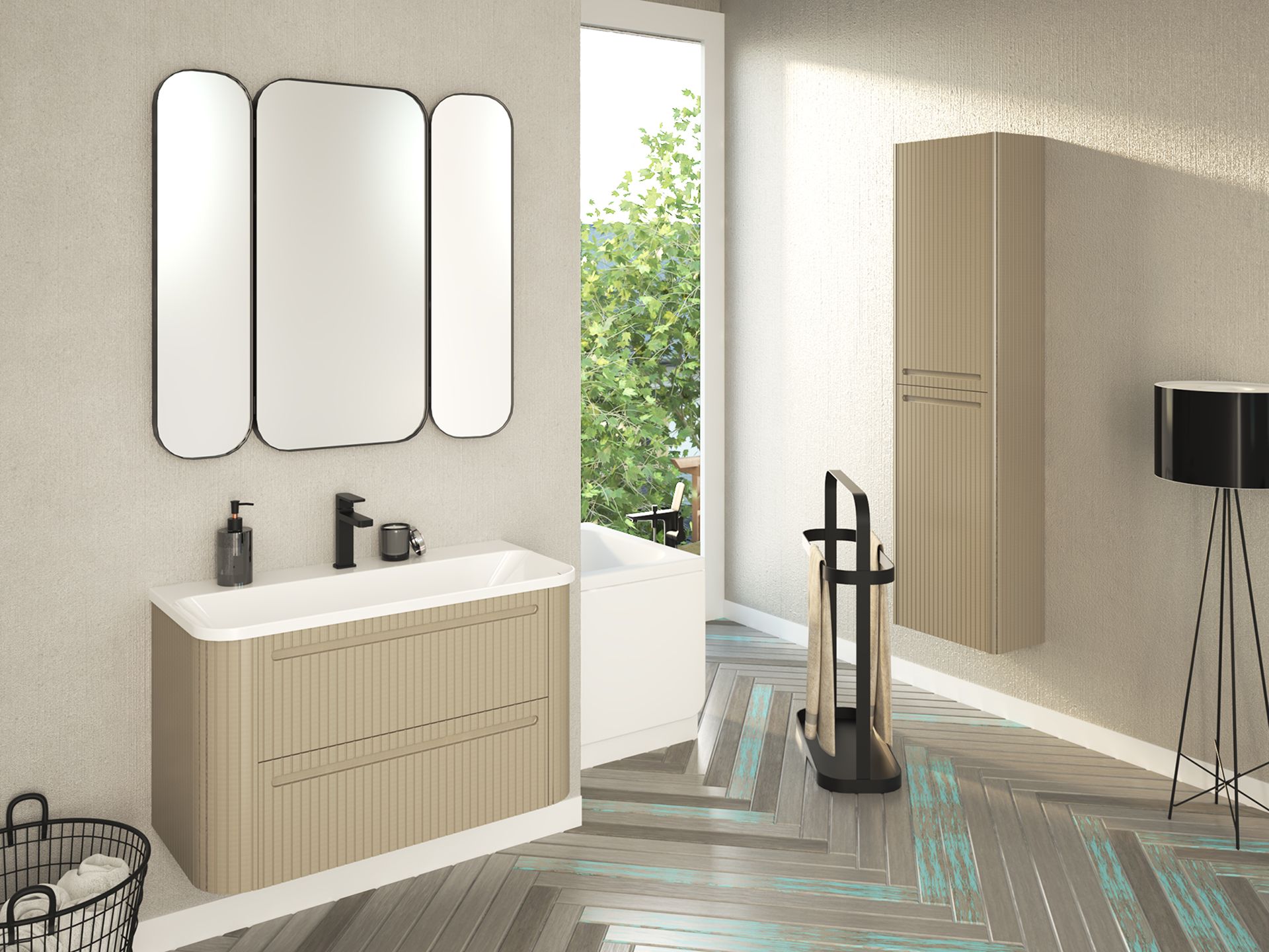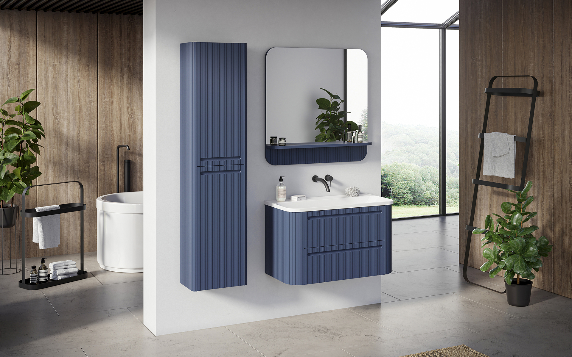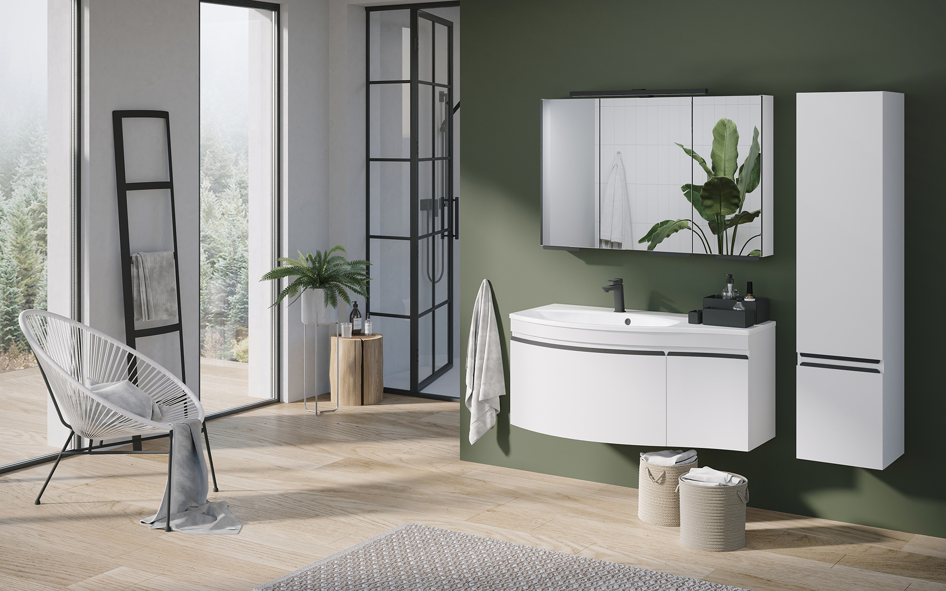 Wielbiciele prostych form docenią niebanalną kolekcję mebli łazienkowych Gloria 2.0 również autorstwa Grynasz Studio. Zaokrąglone ranty szafek pozwalają na swobodny przepływ chi, a ryflowane fronty można odczytać jako falującą wodę. Znowu ukłon w stronę jednego z pięciu żywiołów. W kolekcji znajdują się szafki wiszące z półkami, a także z koszem na pranie, co pozwala ograniczyć ilość dodatkowych przedmiotów w łazience do minimum. Ważne jest też, by nie przetrzymywać zepsutych urządzeń elektrycznych jak suszarki, golarki oraz pustych opakowań po kosmetykach.