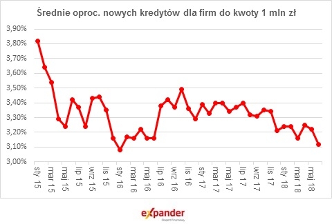 Według najnowszych danych NBP zauważalnie tanieją nowo udzielane kredyty firmowe. Expander zwraca uwagę, że w przypadku tych na kwoty poniżej 1 mln zł, średnie oprocentowanie (3,12%) było niemal najniższe w historii. Mamy też dobre informacje dla klientów indywidualnych – tanieją kredyty hipoteczne i rośnie oprocentowanie lokat.