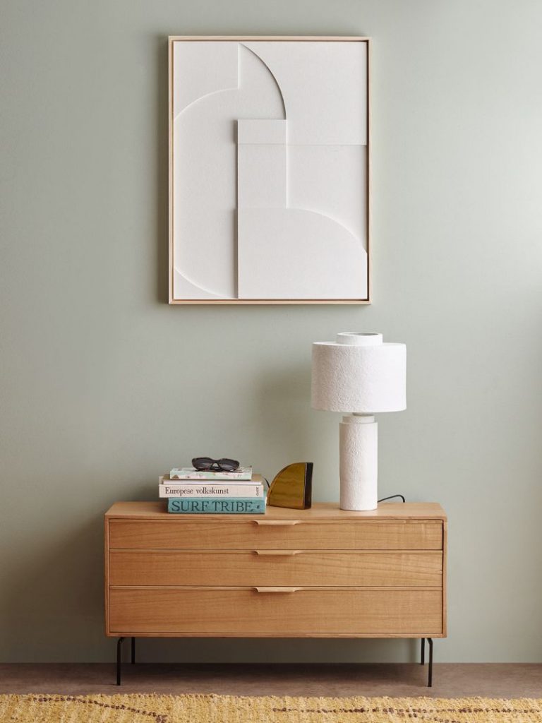 Warte uwagi są także czarno-białe grafiki na czerpanym papierze oraz nadrukowane na aluminiowej płycie kolorowe fotografie artystyczne. Równy zachwyt budzą jednobarwne panele ozdobione reliefowymi motywami i oprawione w dyskretne, drewniane ramy. To projekty własne designerów marki. Znakomicie skomponują się z innymi elementami kolekcji – ceramicznymi płaskorzeźbami w różnych wymiarach, które przedstawiają abstrakcyjne wyobrażenia ludzkich twarzy czy ich fragmentów. Tak samo ciekawie wyglądają obrazy-kolaże powstałe z różnych materiałów: kartonu szkła, pleksi i pianki czy lnu i papieru.