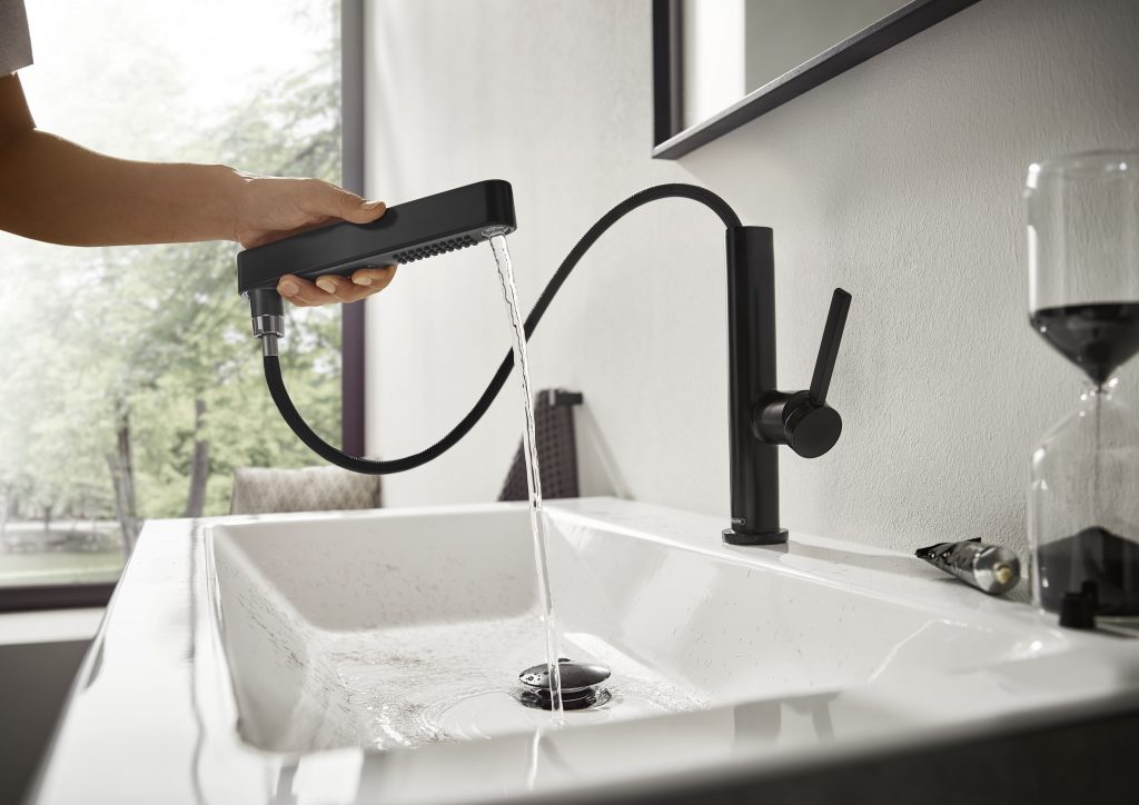 Kolekcja ta jest awangardowa pod względem zarówno formy, jak i zastosowanych udogodnień. Aby się o tym przekonać, przyjrzyjmy się baterii umywalkowej, która dzięki wyciąganej wylewce zapewnia wyjątkową swobodę działania. Sposób operowania wodą (tak samo jak jej ilość i temperaturę) można tu więc, wygodniej niż kiedykolwiek, dopasować do bieżących potrzeb. To samo dotyczy rodzaju strumienia – jeden ruch nadgarstka i naciśnięcie przycisku wystarcza, by przejść np. od niezwykle delikatnego PowderRain do skoncentrowanego strumienia laminarnego.