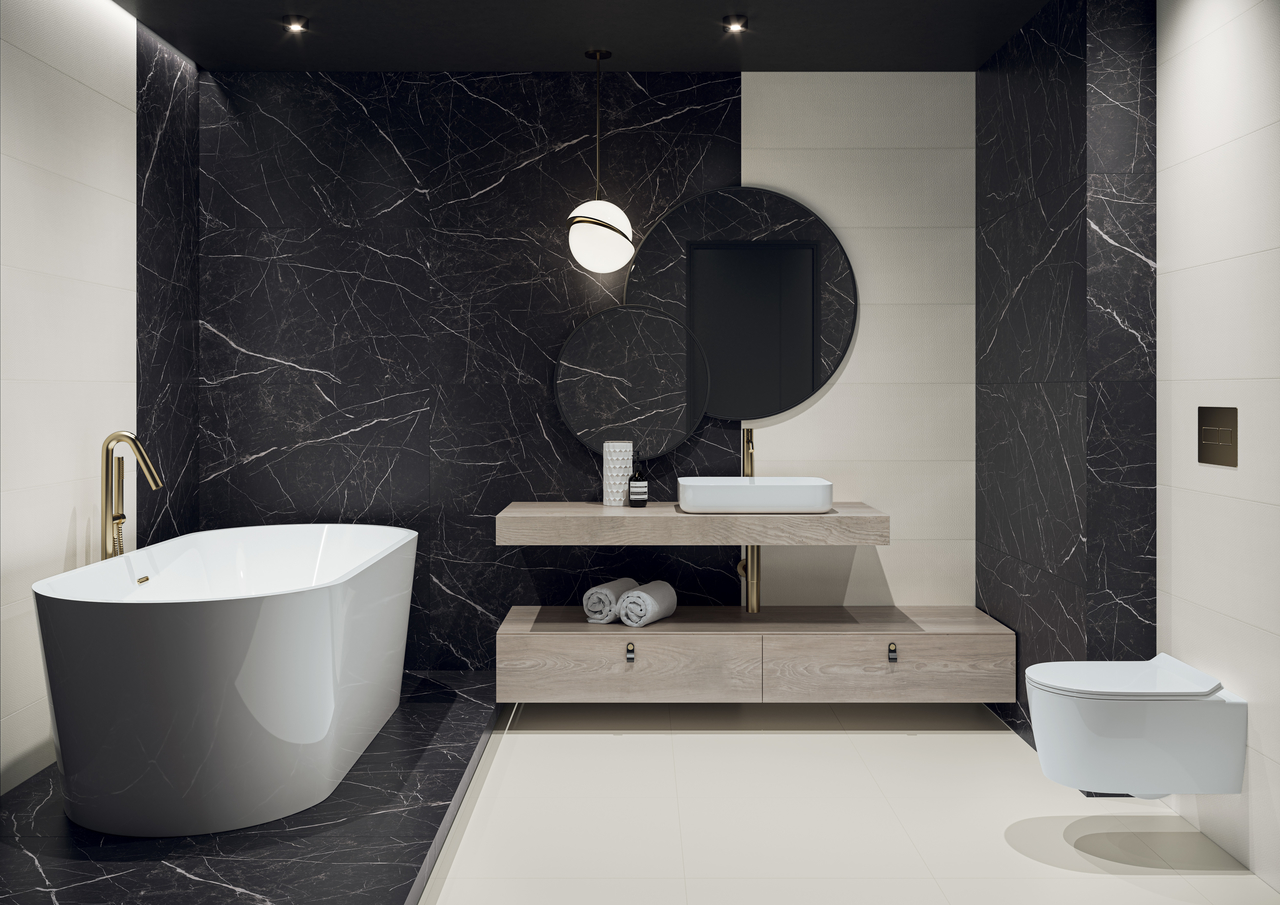 Dzięki zastosowaniu innowacyjnych technologii zdobniczych, specjalistom Ceramiki Paradyż udało się wiernie odwzorować cechy charakterystyczne dla tego surowca i przenieść je na wielkoformatowe płytki ceramiczne. Wyjątkowej głębi nadaje im szczególnie kontrastowe połączenie czerni i złota, które pozwoli wprowadzić do wnętrz wyrafinowaną ekspresję. Płytki doskonale komponują się zarówno z ciepłą fakturą drewna, jak i surową szarością betonu, znajdując zastosowanie w różnych pomieszczeniach w domu. Dzięki temu mogą stać się mocnym i niezwykle modnym akcentem wystroju łazienek, kuchni czy salonów, urządzonych w różnym stylu. Artstone to wyjątkowa kolekcja pozwalająca osiągnąć fascynujące efekty aranżacyjne, obok której nie sposób przejść obojętnie.