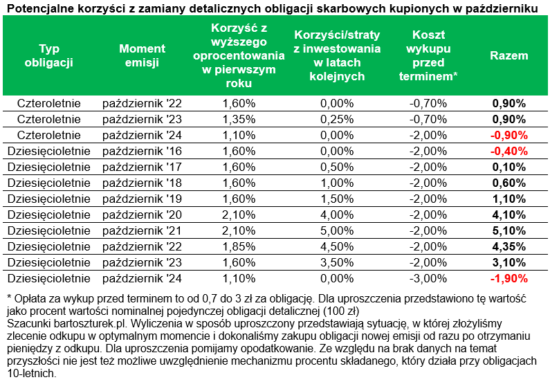 Oczywiście każdy indywidualnie powinien przeliczyć czy opłaca mu się zamiana posiadanych papierów na nowe. Musimy uwzględnić tu co najmniej wspomniane wyżej koszy, potencjalne zyski i to kiedy zainwestowane w obligacje pieniądze będą nam potrzebne.