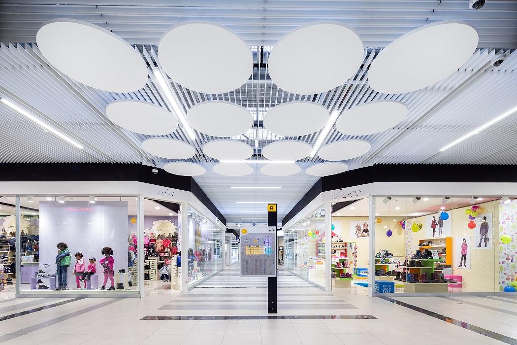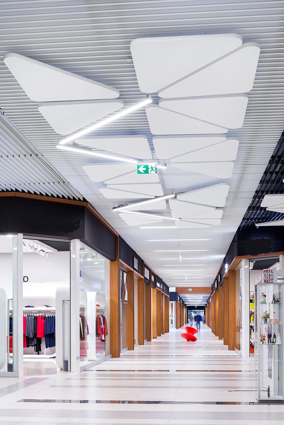 Ekspertka Armstrong zauważa, że świadomość właścicieli galerii handlowych i sklepów dotycząca odpowiednich warunków akustycznych wnętrz powoli się zmienia. Przykładem odpowiednio zaprojektowanej inwestycji jest otwarta jesienią warszawska galeria MODO Domy Mody. Obiekt zaprojektowany został przez biuro APA Wojciechowski. Architekci i inwestor, spółka Devin Investments, zdecydowali o zamontowaniu akustycznych sufitów Armstrong. W sumie by zapewnić odpowiednią akustykę, ale też designerski wystrój zamontowano tam 530 szt. wyspowych sufitów Optima L Canopy, w różnych kształtach (koła, elipsy, trójkąty, sześciokąty). Sufity wyspowe zainstalowane w ciągach komunikacyjnych skutecznie pochłaniają niepotrzebny szum i hałas. W innych częściach centrum MODO zainstalowano też tradycyjne akustyczne sufity mineralne.