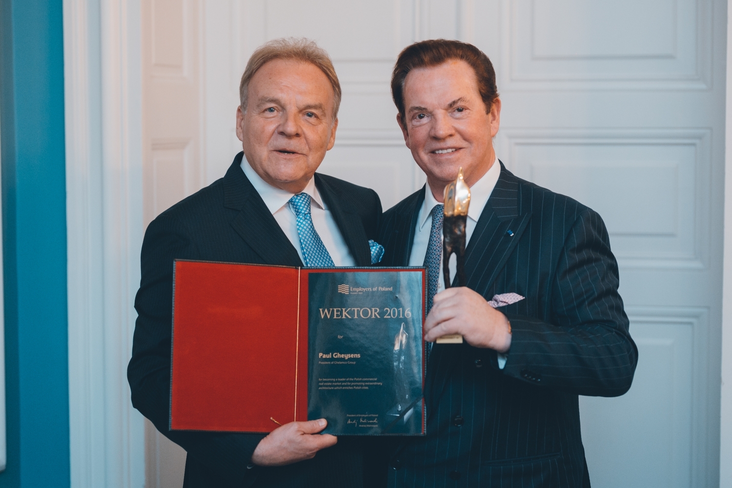 Paul Gheysens, prezes Ghelamco Group, odebrał w czwartek, 30 marca 2017 statuetkę Wektora 2016. Prestiżową nagrodę osobiście wręczył podczas uroczystości w Brukseli prezydent organizacji Pracodawców Rzeczypospolitej Polskiej, Andrzej Malinowski. Wyróżnienie dla Prezesa Ghelamco zostało przyznane za jego szczególny wkład w zdobycie przez firmę pozycji lidera polskiego rynku nieruchomości komercyjnych, a także za wyjątkową architekturę projektów Ghelamco, które wzbogaciły polskie miasta.
