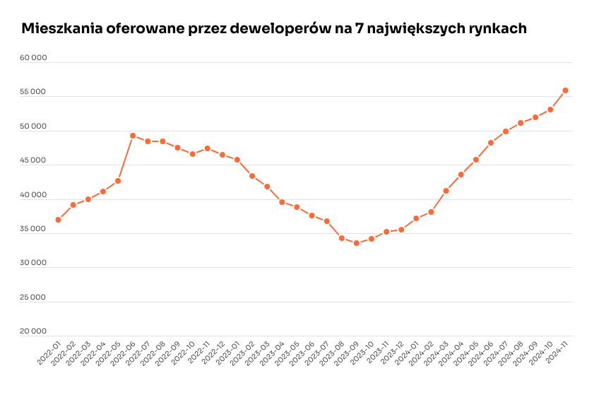 „Przez kilka ostatnich miesięcy w siedmiu największych miastach obserwowaliśmy wyraźną stabilizację cen mieszkań oferowanych przez deweloperów. W danych listopadowych widzimy zmianę dotychczasowego trendu. Bez wątpienia na większości rynków mamy do czynienia z korektą cen. Jednak z odpowiedzią na pytanie, czy to jedynie charakterystyczne dla końcówki roku akcje promocyjne, czy może nowa tendencja, będziemy musieli poczekać do lutego 2025 roku”, podsumowuje Katarzyna Kuniewicz.