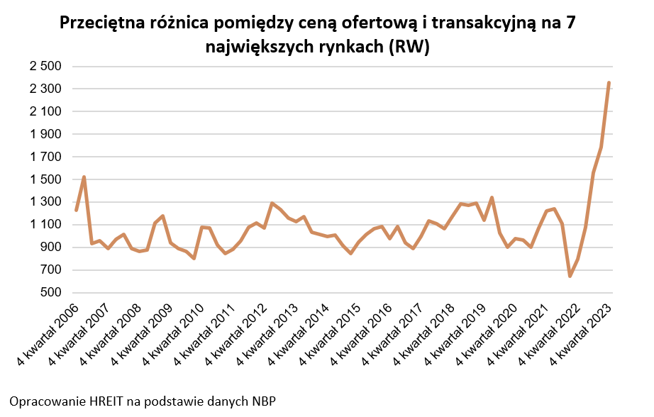 Rekordowa różnica pomiędzy cenami ofertowymi i transakcyjnymi