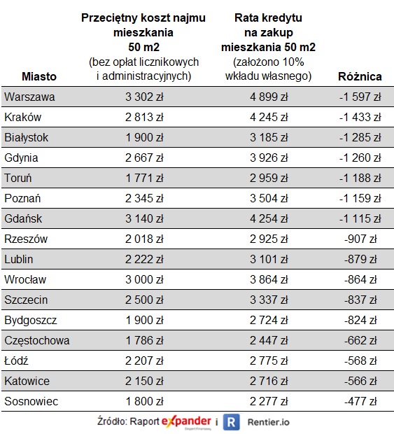 Raty rosną dużo szybciej niż stawki najmu