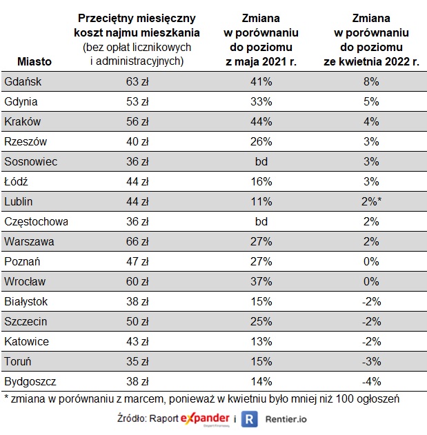 Stawki najmu w maju 2022 r.