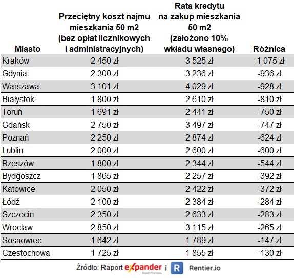 Najem wciąż tańszy niż rata