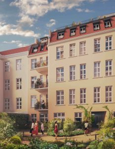 Projekt inwestycji łączy w sobie historię z nowoczesnym designem i ekologicznymi rozwiązaniami. Powstaną zielone dziedzińce z miejscami do odpoczynku dla mieszkańców, multisensoryczny placyk zabaw dla dzieci i ogródki warzywne. W projektowaniu zieleni przewidziano wykorzystanie rodzimych gatunków roślin. Brzozy, derenie, paprocie oraz łąki kwietne nie tylko ozdobią ogród, ale będą też wsparciem dla lokalnego ekosystemu, przyciągając owady i ptaki.