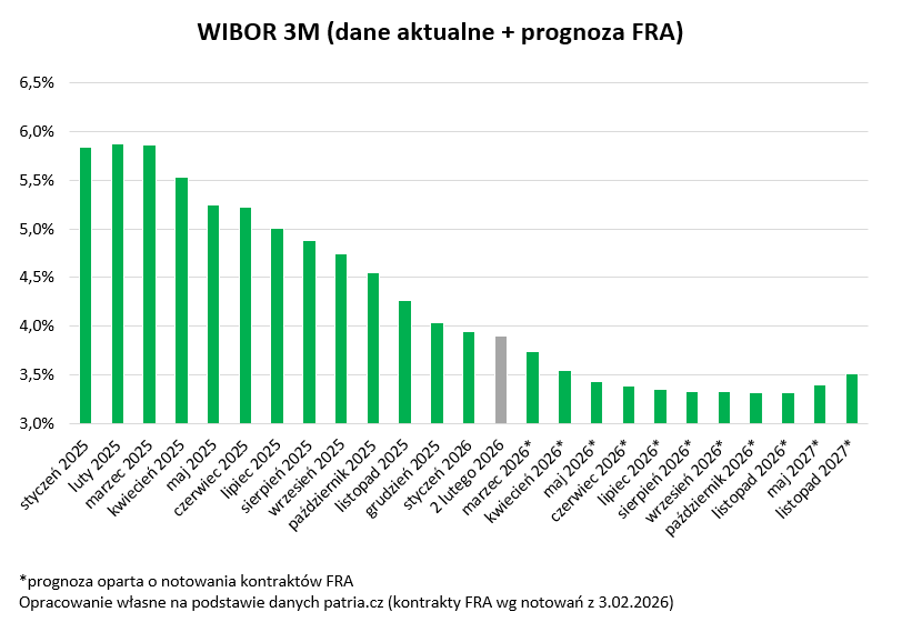 Prognozy Pekao, BGK czy PKO BP sugerują, że w 2026 roku inflacja wynieść ma 2%, a może nawet odrobinę poniżej tego poziomu. To koronny argument za dalszym cięciem stóp procentowych przez RPP. Jeśli do niego dojdzie w lutym, to najpewniej będzie to obniżka o 25 punktów bazowych czyli 0,25 punktu procentowego. Na taką możliwość zwracają też uwagę największe banki (PKO i Pekao) czy notowania kontraktów terminowych na stopę procentową.