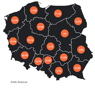 – Kwestie komunikacji i dojazdu do większych ośrodków są tu mniej uciążliwe, niż w województwie lubelskim (+4,8% r/r), łódzkim (+5,1%) czy mazowieckim (+6%), gdzie średnie wzrosty cen nie przekraczają kilku procent – wyjaśnia Karolina Klimaszewska.
