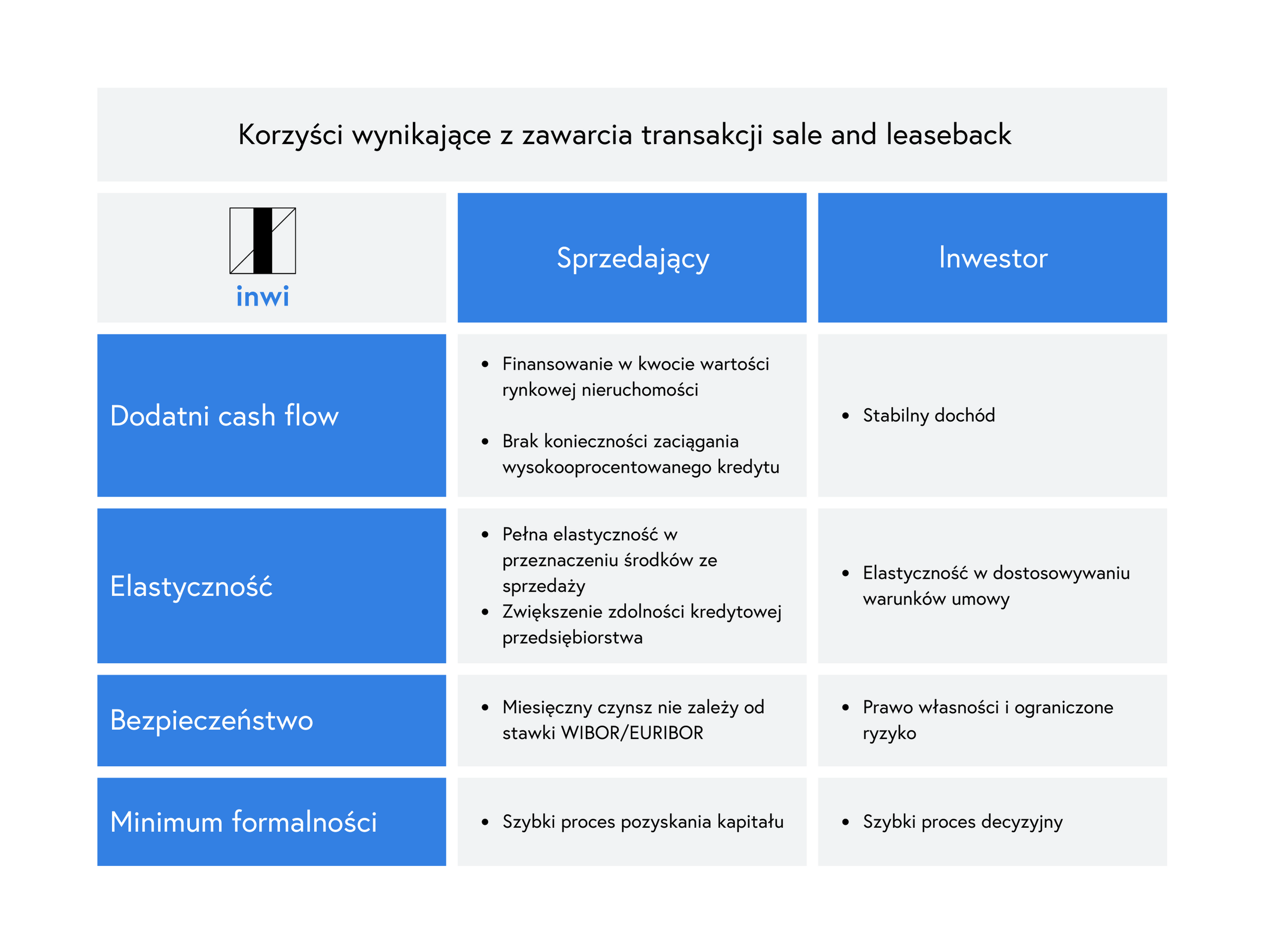 5. Sale and leaseback to proces szybki i często finansowo korzystniejszy niż inne sposoby pozyskania środków. Transakcja nie wymaga żadnego wkładu własnego.