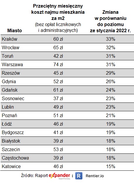 Głównymi bodźcami wpływającymi na rynek najmu był atak Rosji na Ukrainę, rekordowo wysokie stopy procentowe, popandemiczny powrót do normalności oraz bardzo wysoka inflacja. Z raportu Expandera i Rentier.io wynika, że pod wpływem tych czynników, od stycznia do listopada, stawki najmu wzrosły we wszystkich 16 badanych miastach, a średni wzrost wyniósł 14%. W 2023 r. sytuacja prawdopodobnie będzie już dużo bardziej stabilna.