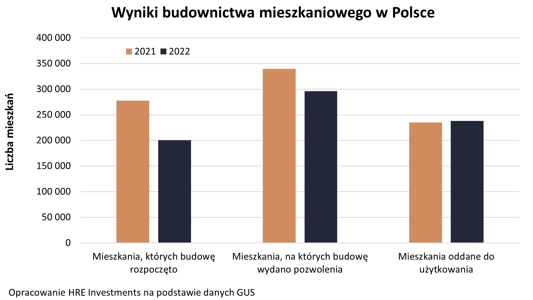 Nikłym pocieszeniem w tej sytuacji jest fakt, że w 2022 roku udało się w Polsce oddać do użytkowania 238,6 tys. mieszkań i domów. To najlepszy wynik od 1979 roku. Niestety dane GUS o mieszkaniach oddanych do użytkowania nie mówią nam zbyt wiele o bieżącej koniunkturze w sektorze budownictwa. Są to jedynie efekty decyzji podejmowanych niekiedy nawet kilka lat temu.