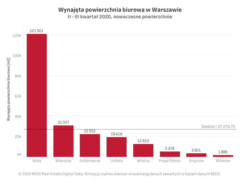 Według danych REDD, w drugim i trzecim kwartale 2020 roku w nowoczesnych obiektach biurowych w Warszawie wynajęto ok. 220 tys. mkw. Ponad 55 proc. tej powierzchni wynajęto na Woli, w ścisłym sąsiedztwie Ronda Daszyńskiego.