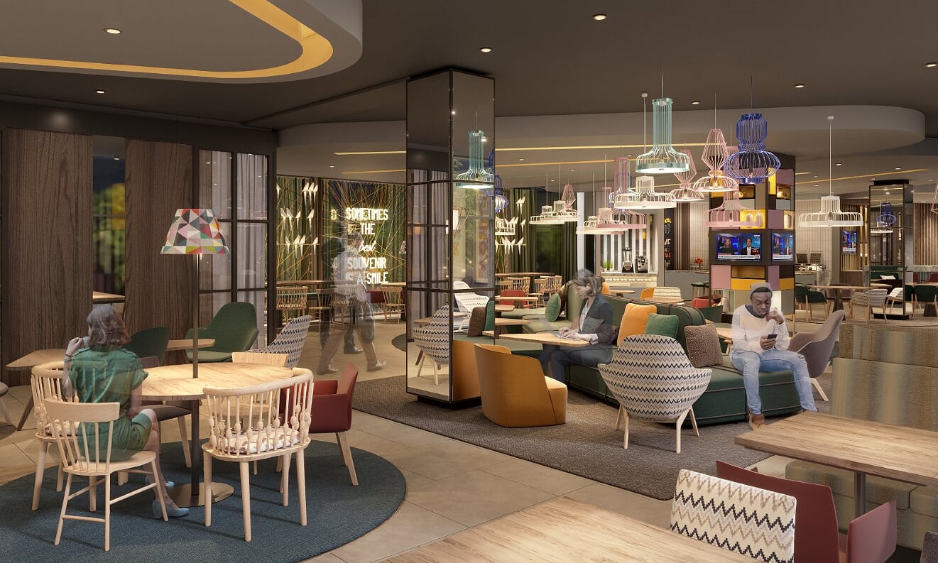 Dzięki doborowi odważnych kolorów, wzorzystych deseni materiałów, tapet czy mebli, projektanci wykreowali nienachalne i zarazem stylowe wnętrza, które uruchamiają wyobraźnię. Lobby i strefa śniadaniowa staną się zapewne punktami rozpoznawczymi hotelu. Duża przestrzeń do spotkań towarzyskich zapraszać będzie do interakcji z innymi gośćmi, do odpoczynku i złapania chwili oddechu. Z kolei wydzielone strefy do pracy pozwolą na wykonywanie służbowych obowiązków w przyjemnej atmosferze. Neony, ciekawe oświetlenie, graficzne detale, lustra oraz podwieszane sufity pomalowane w kilku kolorach nadadzą wnętrzom wakacyjnego luzu.