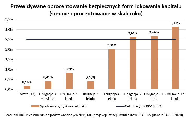 To co prawda nie należy do najhojniejszych, ale i tak jest znacznie lepsze niż oferta bankowych depozytów. Z danych banku centralnego wynika bowiem, że przeciętna roczna lokata otwierana w lipcu była oprocentowana na zaledwie 0,2% w skali roku. W praktyce oznacza to obietnicę wypłacenia symbolicznych 16,2 złotych odsetek po opodatkowaniu w zamian za powierzenie bankowi na rok kwoty 10 tysięcy złotych. I choć z cyklicznego monitoringu HRE najlepszych lokat i rachunków bankowych wynika, że można wciąż znaleźć takie depozyty, które kuszą 2-3% odsetek w skali roku, to niestety są to produkty wybitnie limitowane (na krótki okres, dla nowych klientów, dla ich nowych środków i to najczęściej tylko do kwoty 10-30 tysięcy).