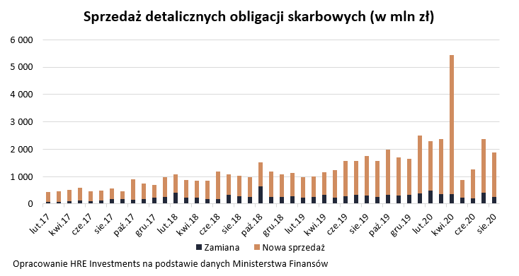 Polacy kupili w sierpniu mniej detalicznych obligacji skarbowych niż w lipcu, a mimo to możemy mówić o kolejnym rekordzie. Powód jest taki, że od stycznia do sierpnia 2020 Polacy kupili obligacje warte prawie 19 miliardów złotych.