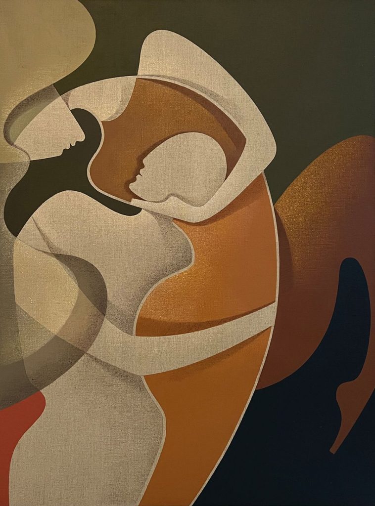 Anna Zalewska: Myślę, że przede wszystkim łączy je to, jak widzę świat, i w jaki sposób chcę przekazać go innym. Ten świat, który dzieje się między nami, na płaszczyźnie emocji i myśli. Dopiero później łączy je technika, temat, kolorystyka. Staram się skłaniać ku naturze, dlatego paleta, której używam – mimo, że mocno różnorodna – zdominowana jest jednak przez kolory ziemi. Z tego też powodu stosuję płótna lniane, czasami celowo zostawiając niezamalowaną fakturę surowego materiału. Inspiruję się naturą, w niej odnajduję harmonię i tym właśnie chcę napełnić swoje obrazy.