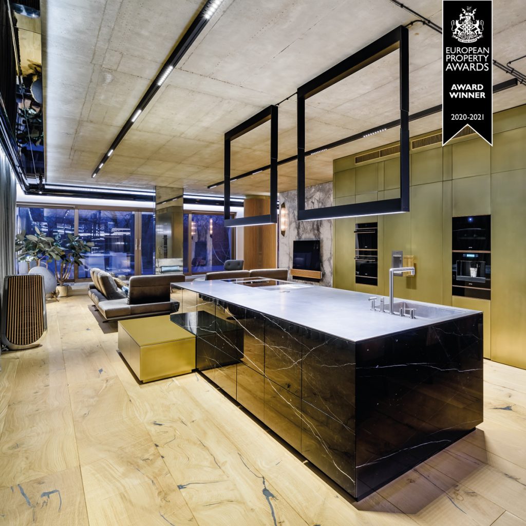 To właśnie pierwsza z nich zapewniła firmie Profbud tytuł zwycięzcy kategorii w Polsce. Nagroda została przyznana za apartament pokazowy znajdujący się w inwestycji Osiedle Awangarda. Za projekt wnętrza odpowiada Agnieszka Kuratczyk i Szymon Tarnowski z Tarnowski Division. Niemal wszystkie przedmioty będące wewnątrz zostały zaprojektowane specjalnie na potrzeby tej realizacji. Ciemne, stonowane kolory, surowość żelbetowego stropu skonfrontowana z gładkością szkła i drewnem wykończonym na wysoki połysk oraz swobodne nawiązania do estetyki art deco, tworzą w nim mieszankę, pełną wyrafinowanej elegancji. Apartament jest odważny, jednak niepozbawiony ciepła, a paradoksalne kontrasty, stanowiące podstawę przestrzeni, przyczyniły się do powstania spójnej, unikalnej całości.
