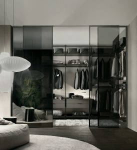 Graphis light to propozycja zaprojektowana specjalnie do zamykania stref garderób. Lekki, oszklony panel, powiązany z aluminiową strukturą, jest doskonale pyło i kurzoszczelny.