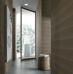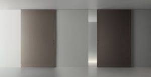 Velaria – drzwi przesuwne wykonane z aluminium o minimalnej grubości. System, podobnie jak inne kolekcje przesuwne, wyposażono w opatentowane innowacyjne rozwiązania, gwarantujące najwyższą swobodę projektowania, łatwą instalację i komfort użytkowania ( np. przez zastosowanie teleskopowej konstrukcji przesuwnej, pozwalającej zniwelować różnicę w wysokości sufitu).