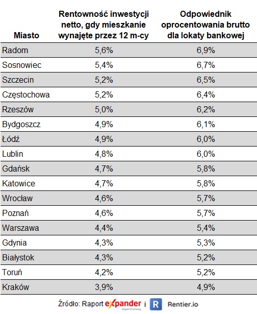 Spadła rentowność inwestycji w mieszkanie na wynajem