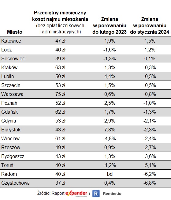 Koszty najmu w lutym 2024 r.