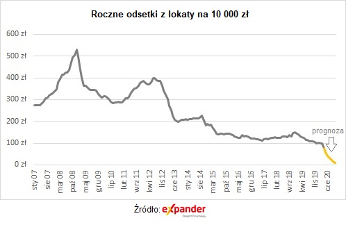 Oprocentowanie w kolejnych miesiącach będzie niestety jeszcze niższe, gdyż w maju miała miejsce kolejna obniżka stóp procentowych NBP. Za chwilę standardem może stać się stawka 0,1% w skali roku, czyli tyle ile wynosi podstawowa stopa NBP. Już teraz część banków oferuje śmieszne oprocentowanie wynoszące zaledwie 0,01%. W takim przypadku roczna lokata na 10 000 zł daje zaledwie 0,81 zł odsetek.