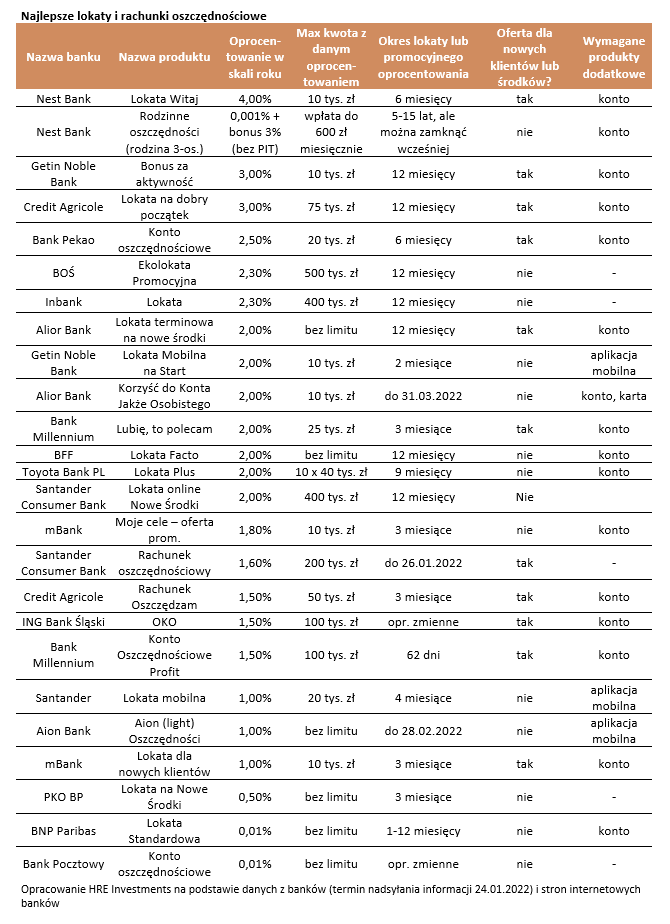Jeśli zmiany będą zachodziły w podobnym tempie też w kolejnych miesiącach, to jesteśmy już coraz bliżej przeciętnego oprocentowania lokat na poziomie 1%. Jeśli ponadto zgodnie z najnowszymi rynkowymi przewidywaniami podstawowa stopa procentowa wzrośnie w Polsce do poziomu około 4,0% – 4,25%, to i przeciętne oprocentowanie bankowych lokat może zacząć w końcu wynosić około 2%. Do takich zmian droga jest jednak jeszcze daleka. Jest to raczej perspektywa końcówki 2022 roku lub dopiero roku 2023 – oczywiście o ile bieżące prognozy się sprawdzą. A trzeba pamiętać, że w ostatnich miesiącach czy tygodniach, rynkowe przewidywania potrafiły się zmieniać jak w kalejdoskopie.