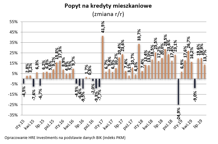 Tego typu opracowaniem jest na przykład publikowana przez BIK informacja o popycie na kredyty mieszkaniowe. Znajdziemy tu informację o tym, jak dużo złożono wniosków kredytowych i na jaką wartość opiewały. I tak na przykład, w sierpniu popyt na kredyty wzrósł o 13,7% (r/r). Przede wszystkim jest to zasługa 10-proc. wzrostu średniej wartości wnioskowanego kredytu. To znaczy, że Polacy wciąż chętnie zadłużają się na cele mieszkaniowe, z czego cieszyć się mogą banki sprzedające kredyty, ale też deweloperzy czy właściciele mieszkań używanych, którzy chcą swoje mieszkania sprzedać. Dane BIK pokazują, że popyt ze strony kupujących posiłkujących się kredytem nie dość, że jest duży, to jeszcze rośnie.