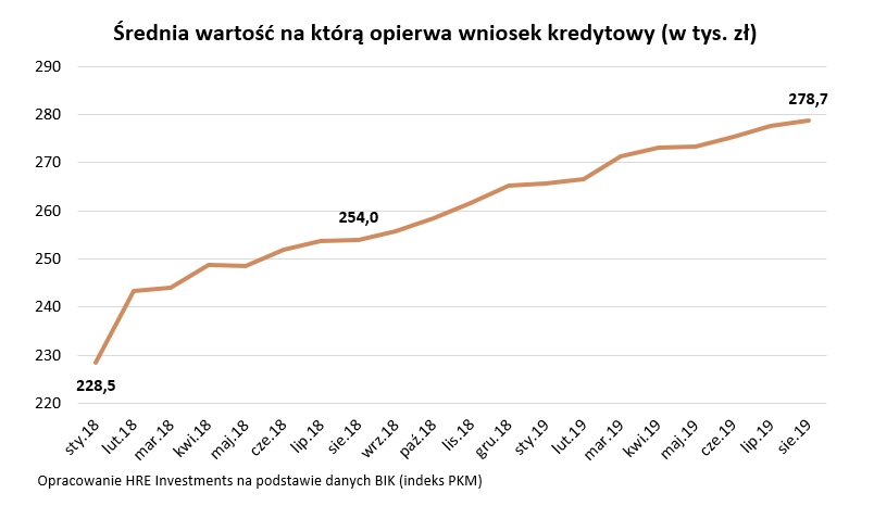 I można by na tej informacji poprzestać, ale publikowane przez BIK dane są też dobrym papierkiem lakmusowym, który wskazywać może w jakim kierunku podążają ceny mieszkań. To przecież od tego ile trzeba zapłacić za mieszkanie przede wszystkim zależy to, ile na jego zakup musimy pożyczyć. Jeśli w sierpniu nie mieliśmy do czynienia z zaburzeniem tej prawidłowości, to dane BIK można odczytywać tak – ceny mieszkań wciąż dynamicznie rosną.
