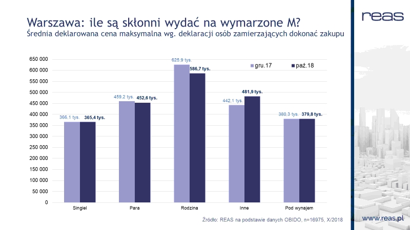 Ceny rosną, a skłonność nabywców do zwiększania wydatków wcale za tym nie idzie, co pokazują badania preferencji nabywców prowadzone przez REAS we współpracy z OBIDO. W porównaniu z grudniem 2017 r. uśredniona deklarowana kwota maksymalna zakupu spadła niemal w każdej z analizowanych grup.